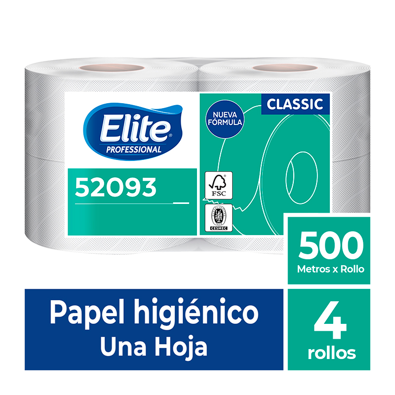 Papel Higiénico Elite Classic Una Hoja 4 Rollos x 500 Metros