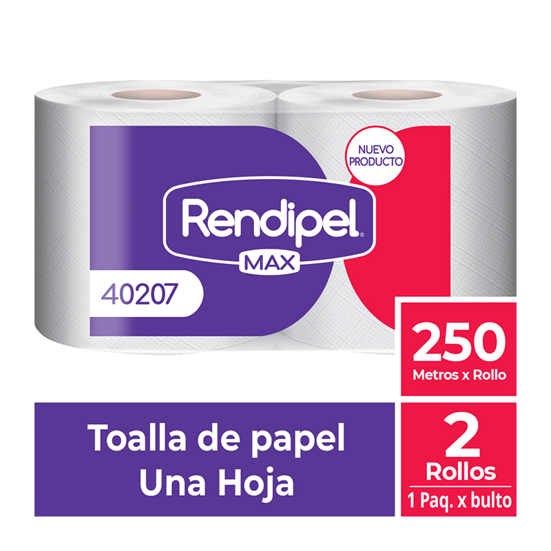 Toalla de Papel Rendipel Max 2 Rollos x 250 Metros (MAX ALTA 19 CM)